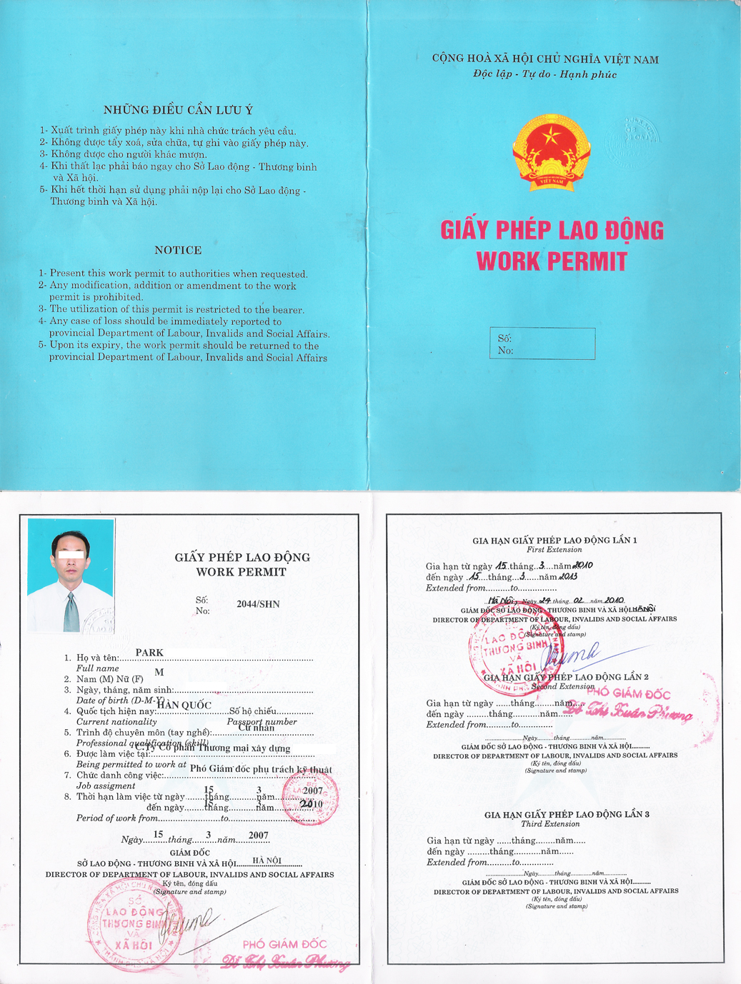 베트남에서 정식으로 노동허가를노동허가를 받은 경우는