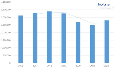 <베트남 연도별 오토바이 판매량(2016-2022)>