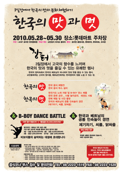 이 행사는 ACEF 호치민 한국문화원에서 주관하며, 교민잡지 라이프 플라자에서 주최/기획, 호치민 총영사관, 롯데리아, 롯데마트, 오리온에서 후원하는 행사로 한국의 맛과 멋을 통해 한국문화를 알리고 한베문화의 동질감을 느끼게 하여 미래의 한베관계의 우호적인 관계를 증대할 수 있는 행사로 한국의 장터속에서 모두가 하나되는 행사다.